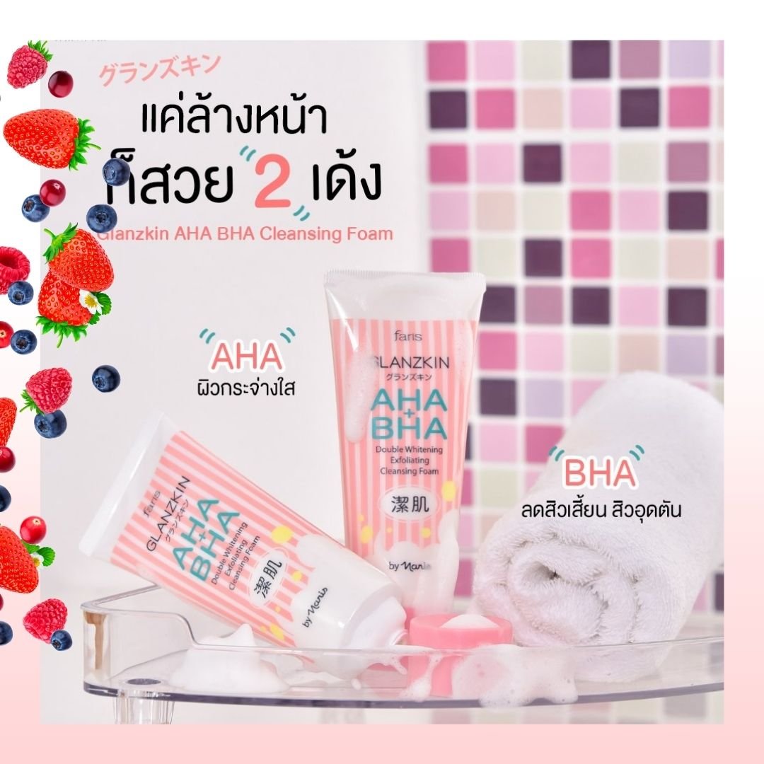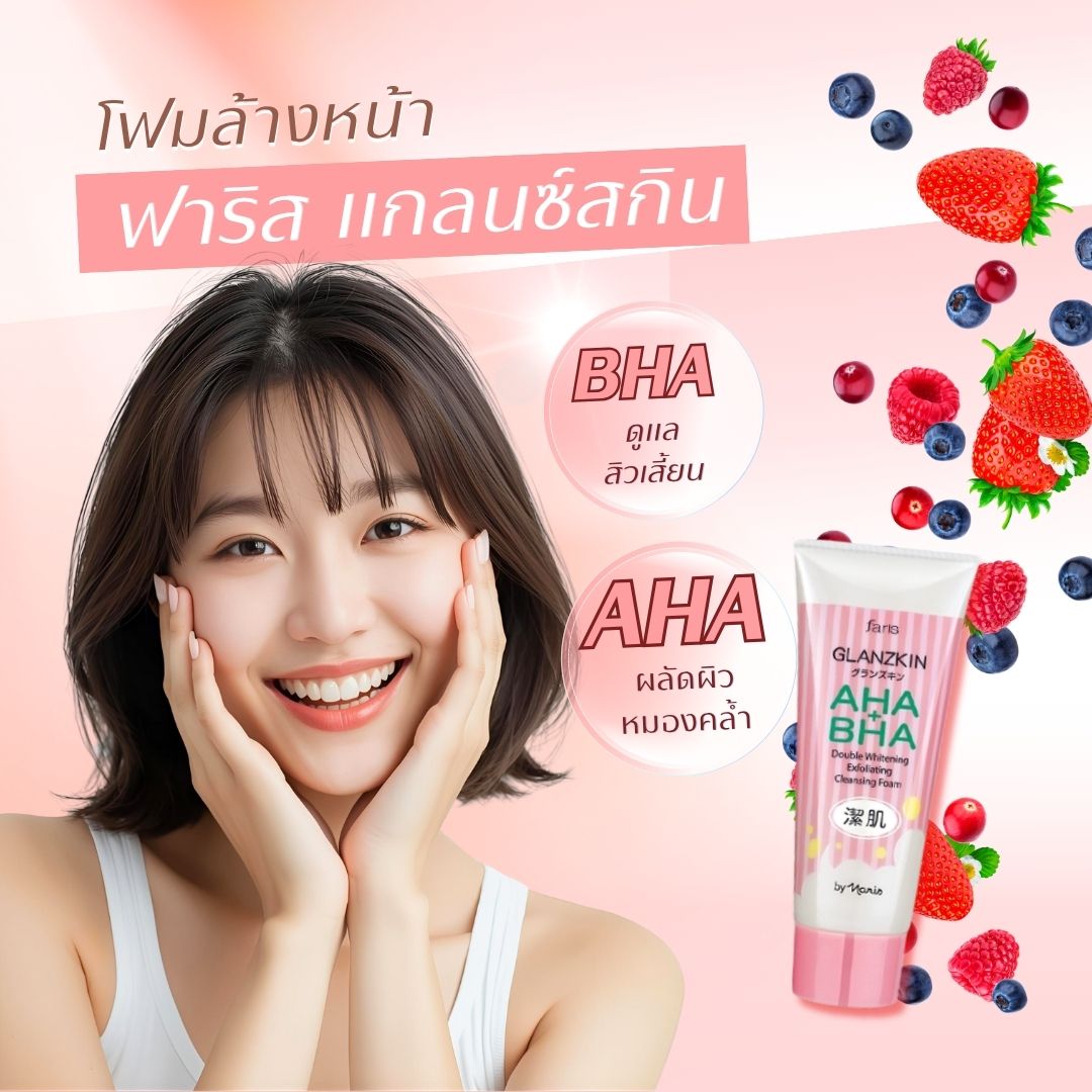 ฟาริส แกลนซ์สกิน เอเอชเอ+บีเอชเอ ดับเบิ้ล ไวท์เทนนิ่ง เอ็กซ์โฟลิเอติ้ง เคลนซิ่ง โฟม ขนาด 80 กรัม